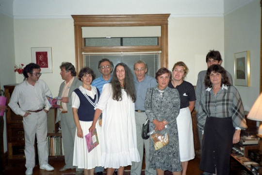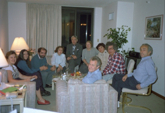 Top: Natasha Volshina, Alice, Me, Yuri Semenov and wife, Alyesha Anselm (forward) and wife, Nellie and Arkady Vainshtein, and Iosif Khriplovich