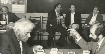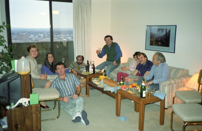 I understood from my trips to Russia that the Soviet Union was disintegrating. If this happened, there would be a mass exodus of talented physicists from Russia. There might be a variety of possibilities of arranging joint appointments with Russian institutions, or directly hiring Russians who had decided to leave Russia. In any case, the first thing I did as acting director was to arrange for visits of a year for half a dozen Russian scientists and their families. I was told that if I invited two people from an institute, this would improve the chances of being allowed to leave for the visit. For a year’s visit, I could also have their families come with them. I invited Arkady Vainshtein and Iosif Khriplovich from Novosibirsk, Misha Volsohin and Yuri Semenov from the Institute for Theoretical and Experimental Physics in Moscow, and George Savvidy and Alex Khodjamarian from the Yerevan Physical Institute in Aremenia. They all accepted and they all came.