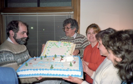 This was a feat equaled by Krzysztof about a year later. I had organized a meeting in Seattle and invited Krzysztof, but had no information that he would be able to attend. The day before the meeting began, I got a phone call late in the evening, and it was Krzysztof. He was at the physics building and he wanted to know where he was to go. He had apparently been given a plane ticket only to Montreal, Canada, and no money. At the Montreal airport, he met some Poles (whom he had not known before) who lent him enough money to get a plane ticket to Seattle. He arrived at Sea-Tac airport, and somehow figured out how to take public transportation to the airport, something few residents of that city ever learn. He got to the University late in the evening, convinced someone they should let him in, found a phone and a phone book, and called me. Krzysztof has always been a shoot first and ask questions later person. He explained to me that when he was told he could travel, he simply had to leave, there would be no second chance. He figured he could make the rest work out -- and he did.
