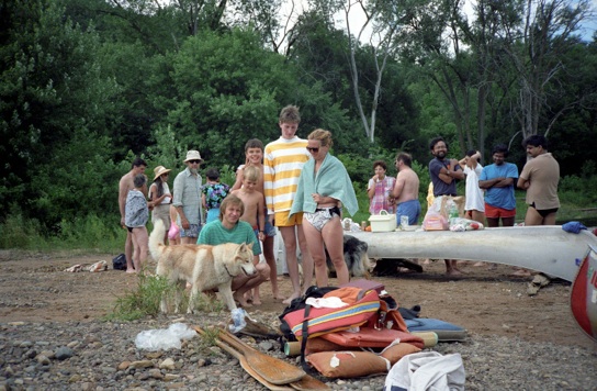 Left: The annual canoe trip. In the background in blue is a young Raju Venugopalan with a full head of hair