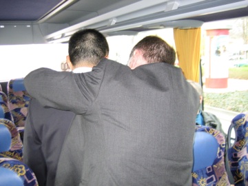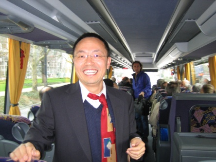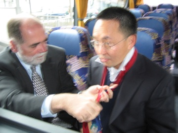 During Walter Geriner’s 70’th birthday celebration in Frankfurt, I had an opportunity to teach my good friend Nu Xu, now spokesperson of the STAR experiment, how to tie a tie. Takeshi caught it on camera. (Nu is a regular visitor to Brazil and a friend of both me and Takeshi.) Please note the look of delight in Nu’s eyes once I showed him how it should be done.