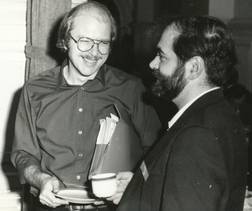 Left: “Papa” Midal, Gordon Baym (in background), T. D. Lee, and Hemlut Satz. Right: Helmut Satz and Fritjof Karsch