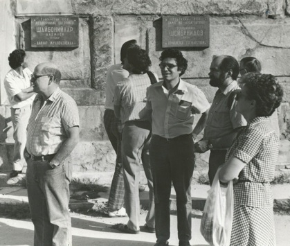 Bottom: Natasha Volshina, Alice, George Savvidy, me, Alex Khodjamarian, Sergei Voloshin and wife and Iosif Khriplovich