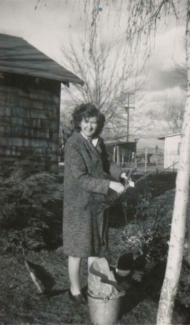 Mom was traditional, staying at home and taking care of her three children. She was very attentive. I only remember she let me down once. I and a friend had been out camping overnight along the Yakima river. My friend’s dog was along, and somehow in the middle of the night the dog had an unfriendly exchange with a skunk. The dog came back to our camp and climbed in bed with me while I was asleep. The next morning we hiked back home, my friend insisting that I keep some distance from him. When I got home, tired and with a bad headache from the awful smell, Mom somehow noticed when I was coming through the door, and insisted I go outside. She locked the doors and would not let me in until I had taken off my clothes and rinsed in the lawn hose. It was hard to convince her that I had really rinsed off, since skunk is a smell that doesn’t wear off, but eventually I got inside.