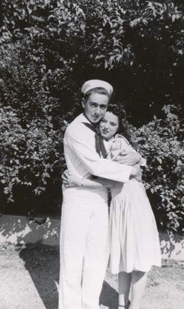 During the war, he met my mother Geraldine Myers, and they were married before the war ended. Their wedding photo is to the right. Mom was from Lancaster Pennsylvania. She had been raised by her aunts. Her mother had died in a stove explosion and subsequent fire. Her father was a school teacher and was college educated, but after his wife’s death drifted into depression. On the few times I met her father, he was living in the Yakima Valley working as a farm laborer. Neither my mother nor my father ever got to college.