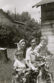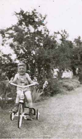 After Mom and Dad were married, Mom went off to live with Grandma. Once the war was over, they got their own place and had their first child, my older brother Stanny. He died shortly after his third birthday. He had been given a tricycle as his birthday present. I was a little older than 1 year at the time, and my mom’s attention was diverted while Stanny rode his tricycle down the hill from our house. He was run over when a truck backed up in a driveway.